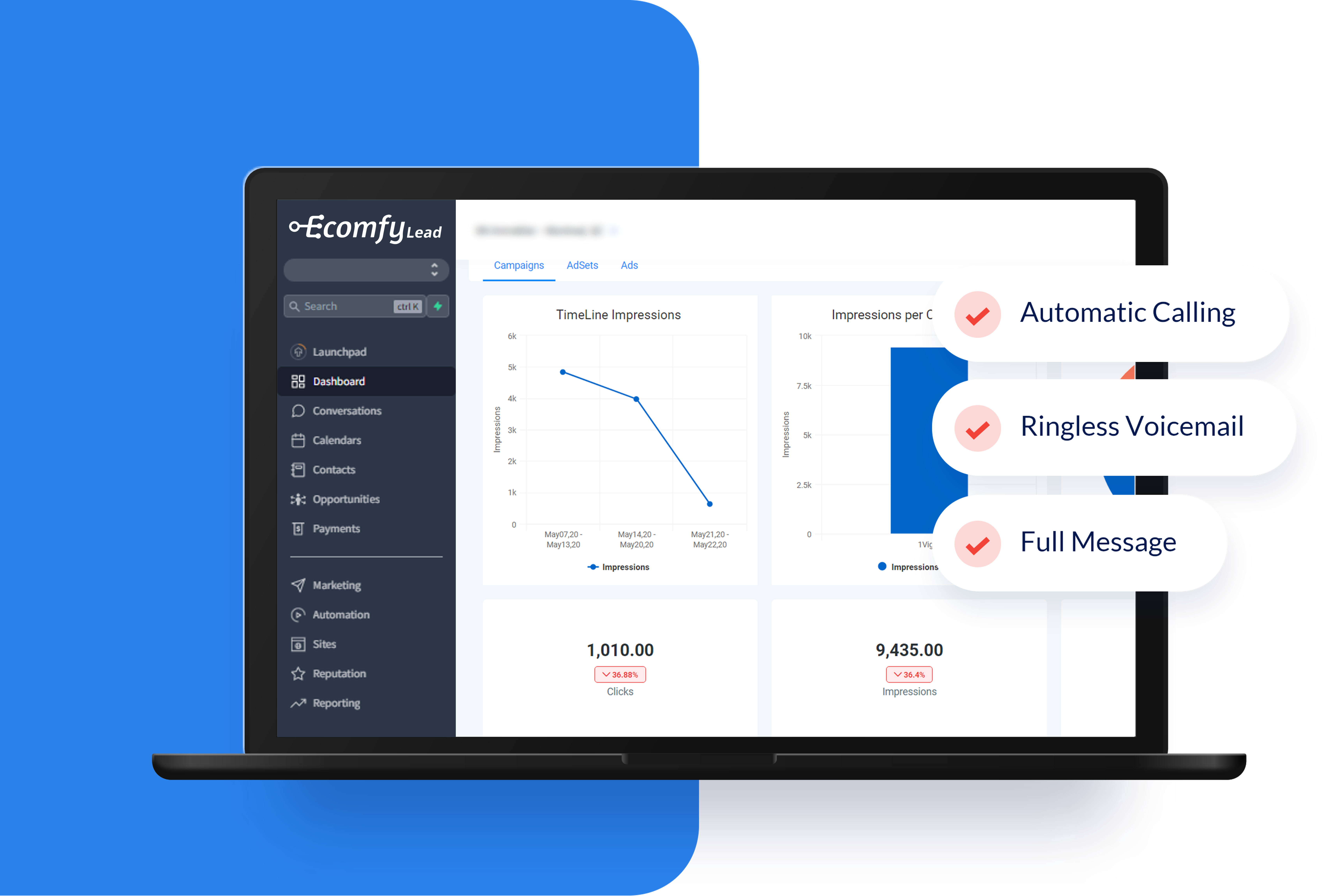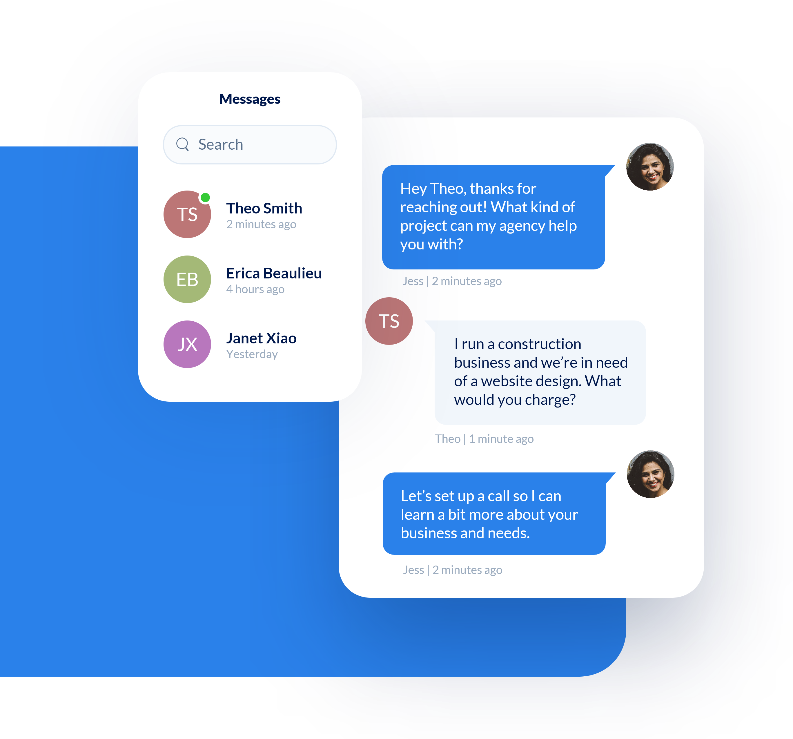 converse with leads & clients via text, phone, and Facebook