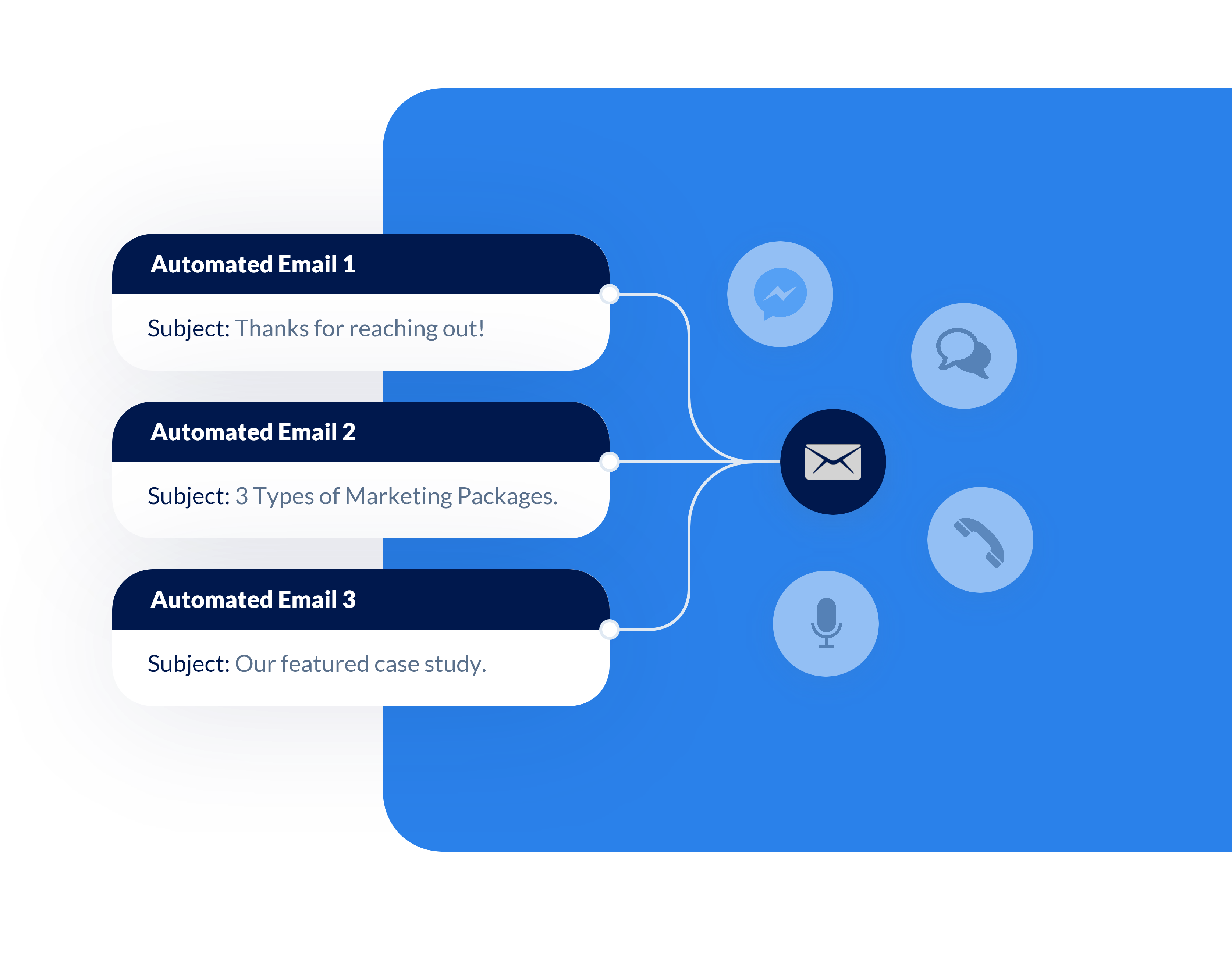 create user automated sms, email, phone calls, voicemails, and